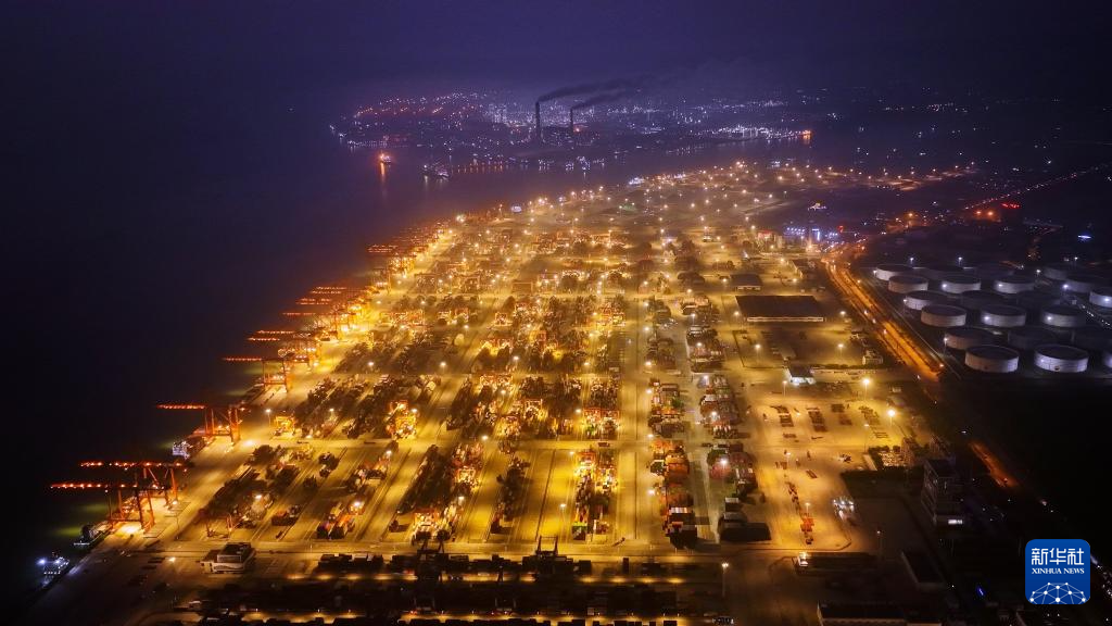 3月4日拍摄的钦州港码头夜景(无人机照片)。