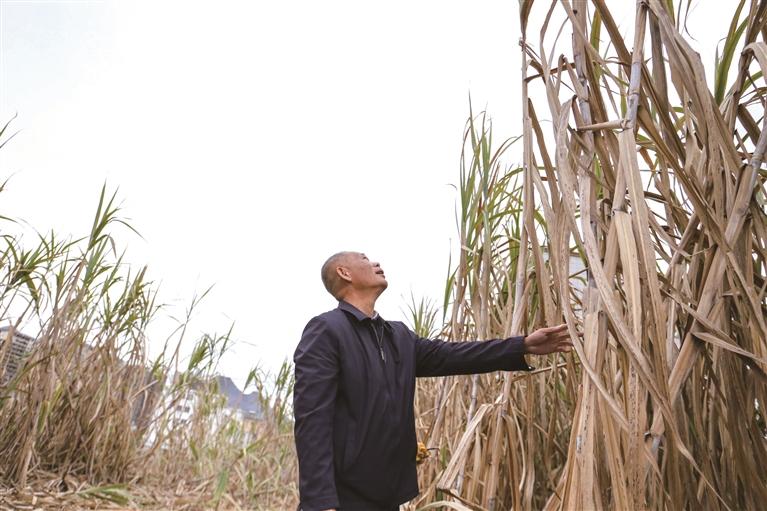 卢文祥观察甘蔗的长势。