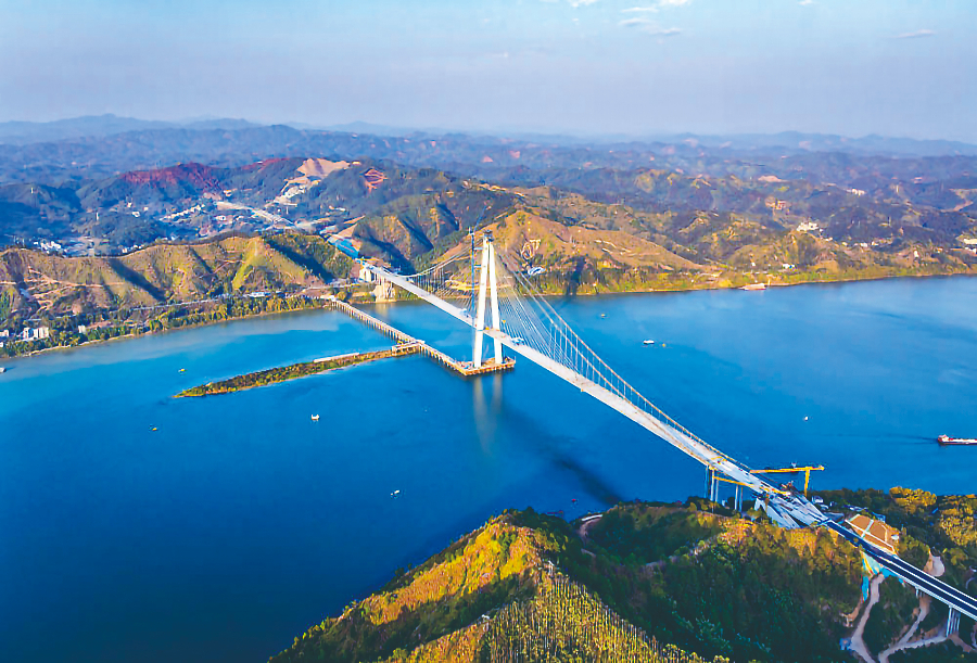 3月5日,藤州浔江大桥合龙段吊装完成。来源:新华社客户端从“大思政课”感受交通跃迁