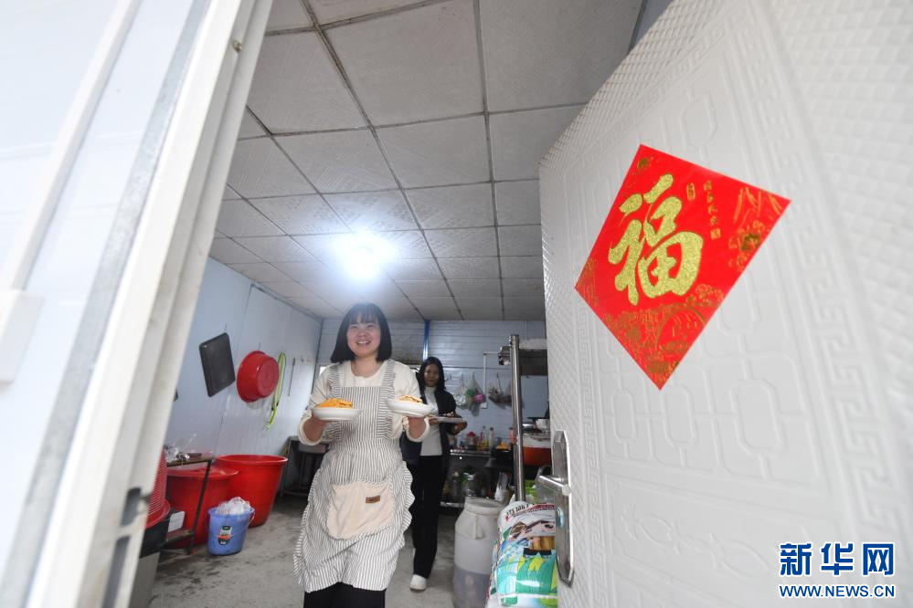 柳州市柳江区三都镇鱼宜高速公路建设工地,中铁二十局的工人和家属在准备晚饭(1月22日摄)。