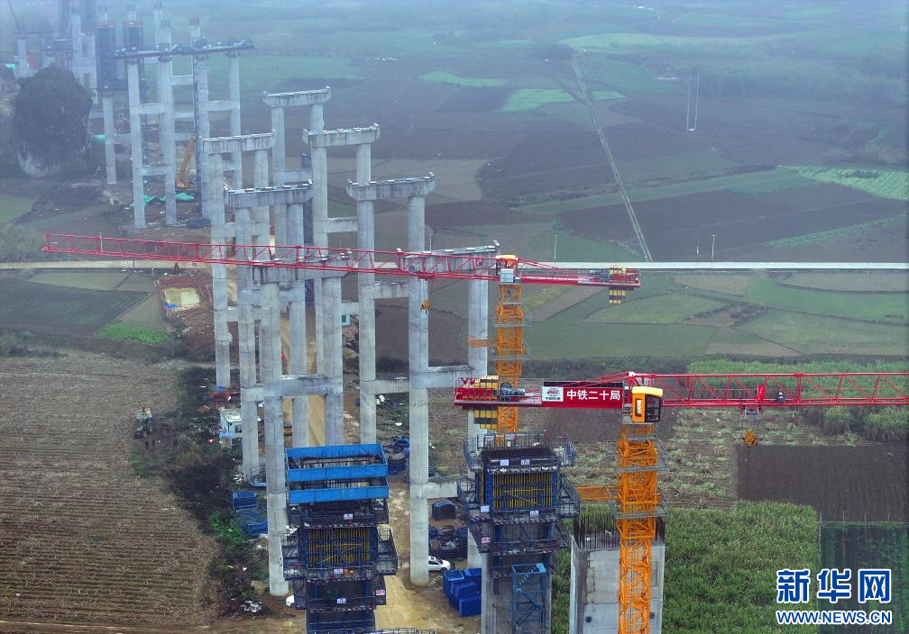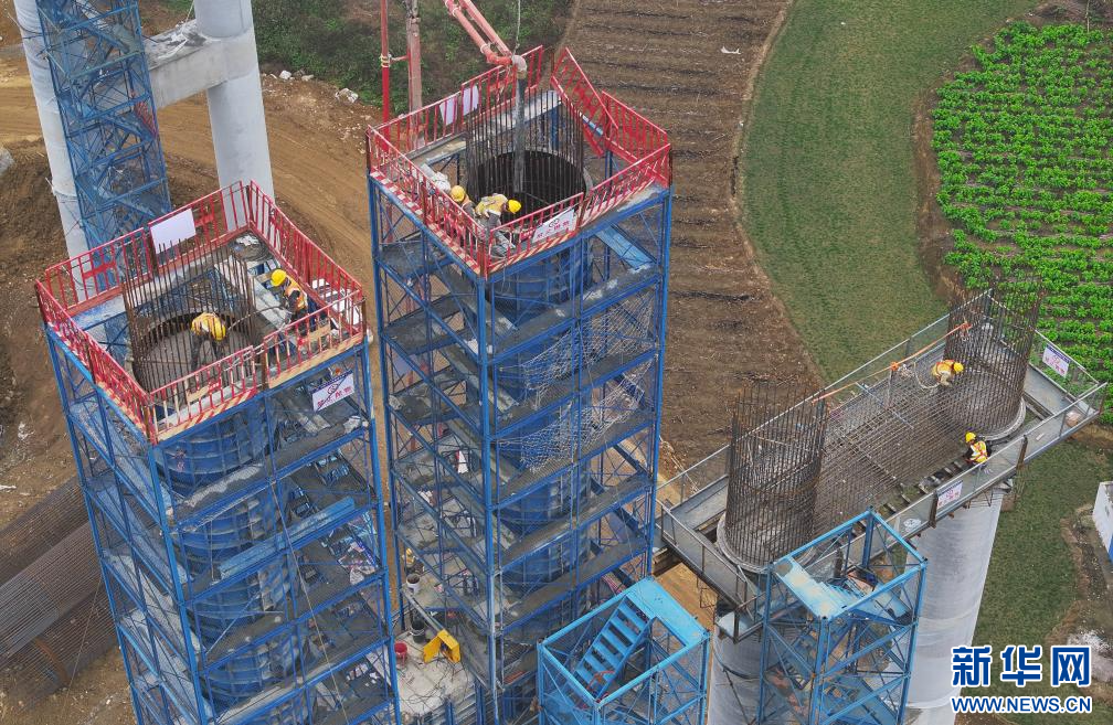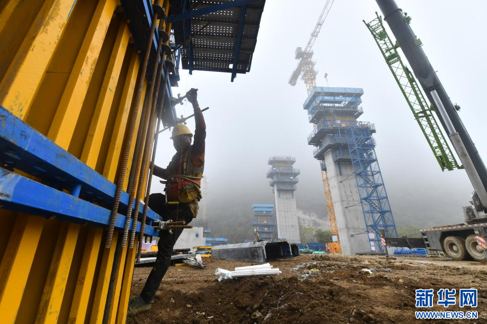柳州市柳江区三都镇鱼宜高速公路建设工地,中铁二十局的工人在作业(3月14日摄)。