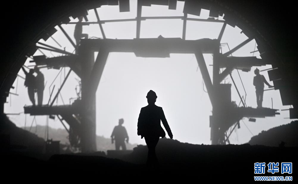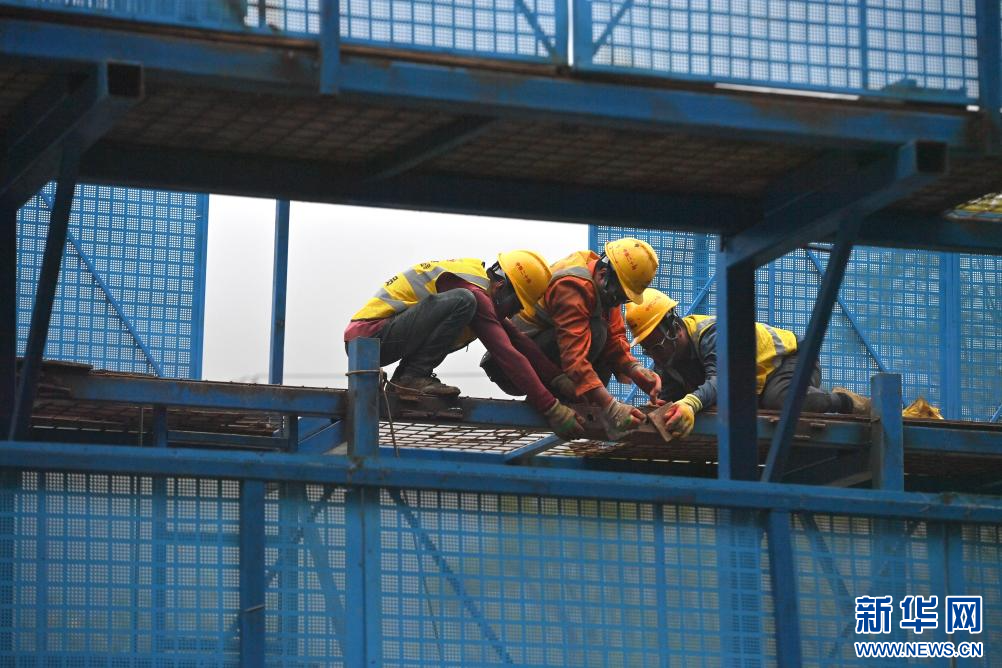 中铁二十局的工人在柳州市柳江区三都镇鱼宜高速公路建设工地作业(3月14日摄)。