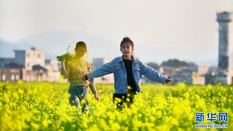 宾阳县油菜花田中赏花的游客