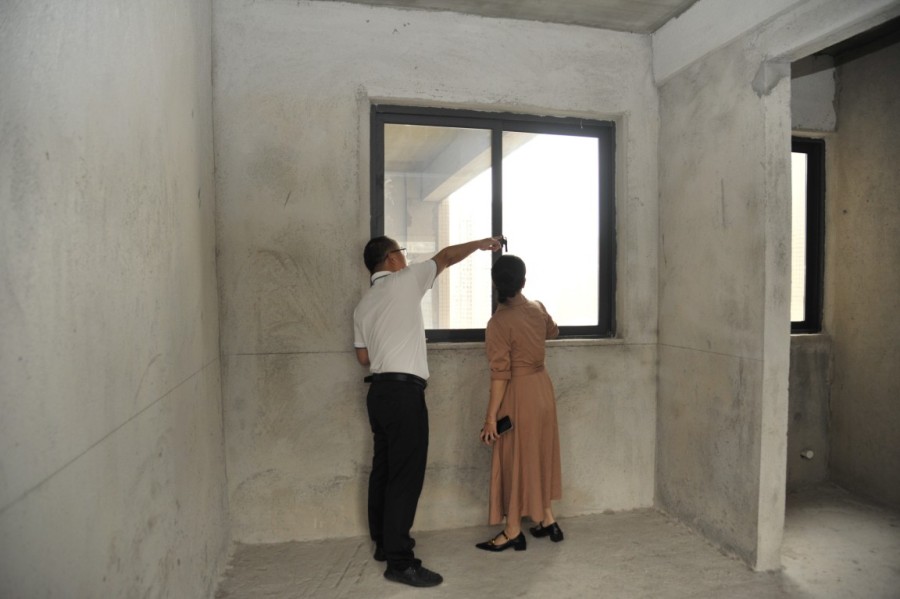 市民林宇夫妇在商量新家装修风格。余宴 摄