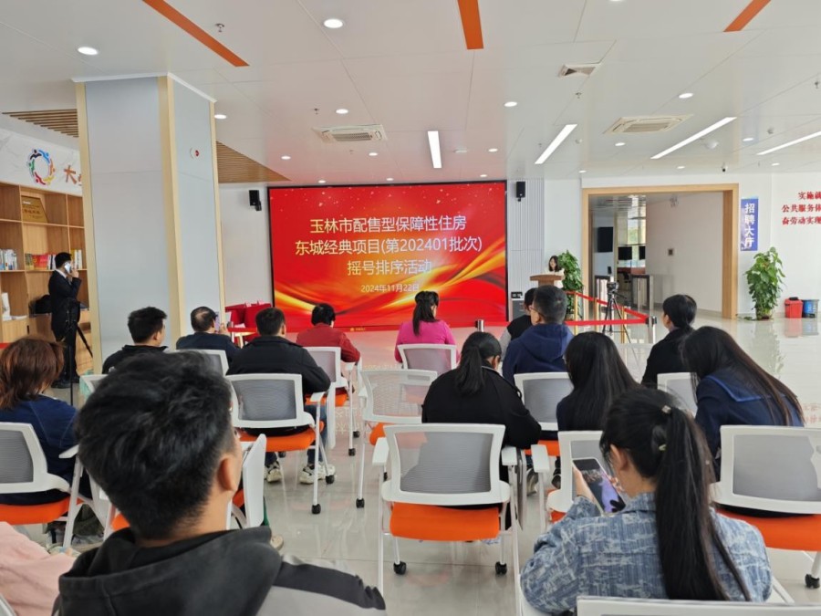 玉林市城市安居公司总经理封皓瀚介绍,为确保公平分配,玉林市采用“优先+公开双摇号”机制,对公租房家庭、多孩家庭等特殊群体优先配售,剩余房源通过公开摇号分配。目前,平台已受理1378份申请,853人进入轮候库,全过程透明可溯。