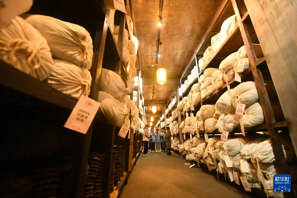 2月21日,在广西梧州市苍梧县六堡镇塘平村,小学生在茶厂学习茶文化。