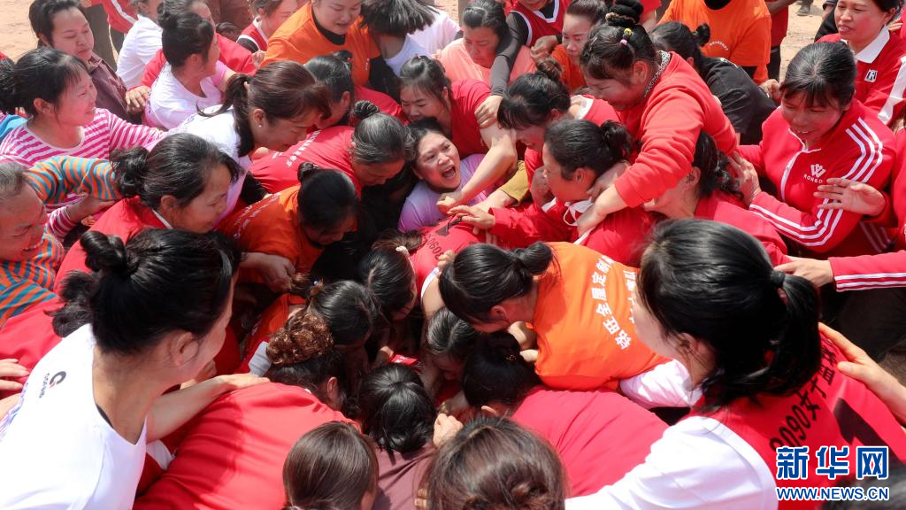 4月1日,在三江侗族自治县斗江镇沙宜村,女子花炮队在“抢花炮”。
