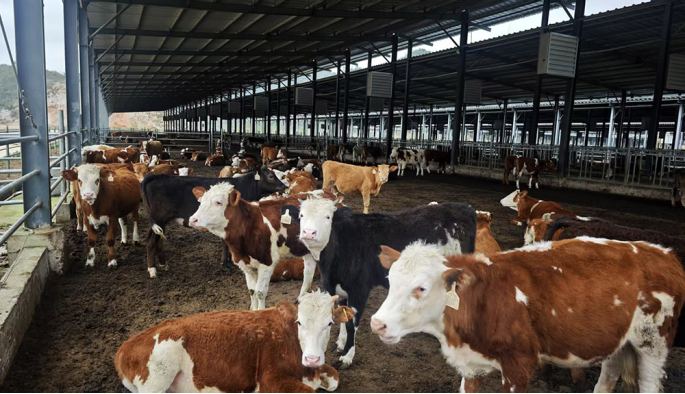 走进崇左市天等县驮堪乡驮堪村,一座现代化养牛场格外引人注目。养殖棚高大宽敞,高达5米,顶部整齐排列着排气扇,不断为棚内带来清新空气,体格健壮的牛群在其中悠然自得地踱步。