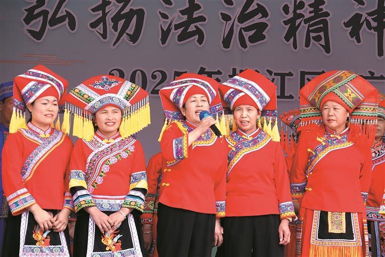 3月26日,“弘扬法治精神 唱响和谐柳江”2025年柳江区广西“三月三”山歌擂台赛,在穿山镇公共文化服务中心举行。30余位山歌选手齐聚一堂,各展歌喉,进行激烈的山歌比拼。他们巧妙地将“八五”普法以来柳江区法治建设的成效亮点、全民法治观念的显著提升,以及法治助力乡村振兴带来的崭新风貌融入歌词,形成一首首动人的山歌,既展现出山歌艺术的独特魅力,又传递了法治文化的正能量。经过多轮紧张激烈的角逐,评选出4名“歌王”和8名“优秀歌手”。