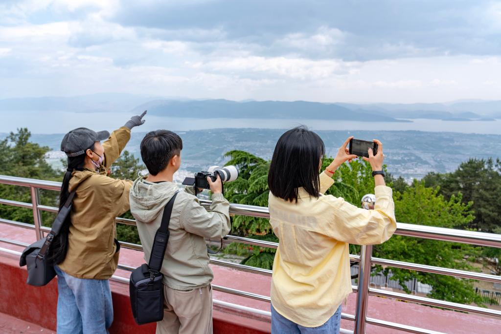 2025年4月23日,游客在大理苍山玉带路欣赏风光。新华社发(罗铸摄)