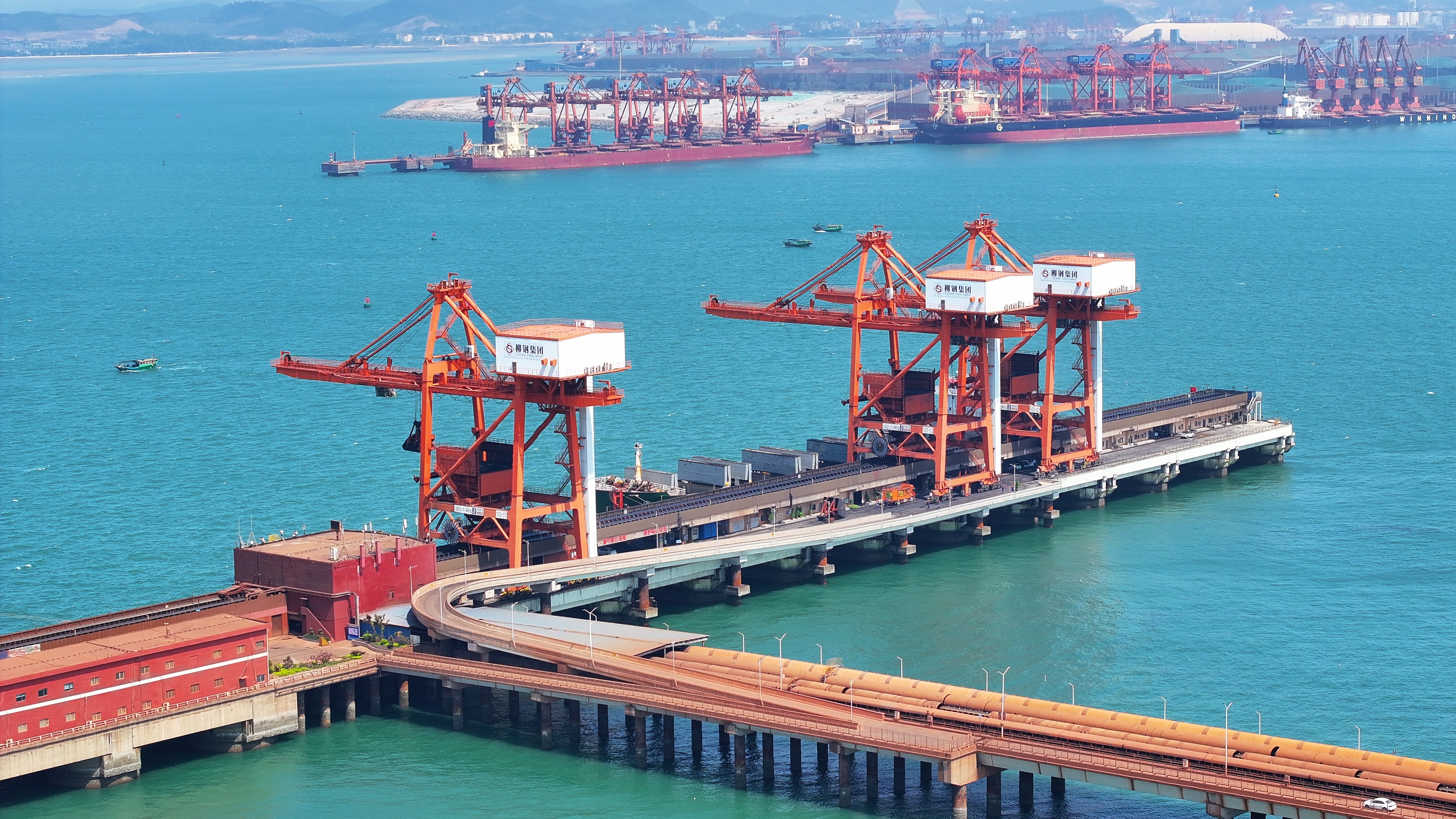 广西钢铁原料码头进行原燃料卸船作业。邹华勇 摄