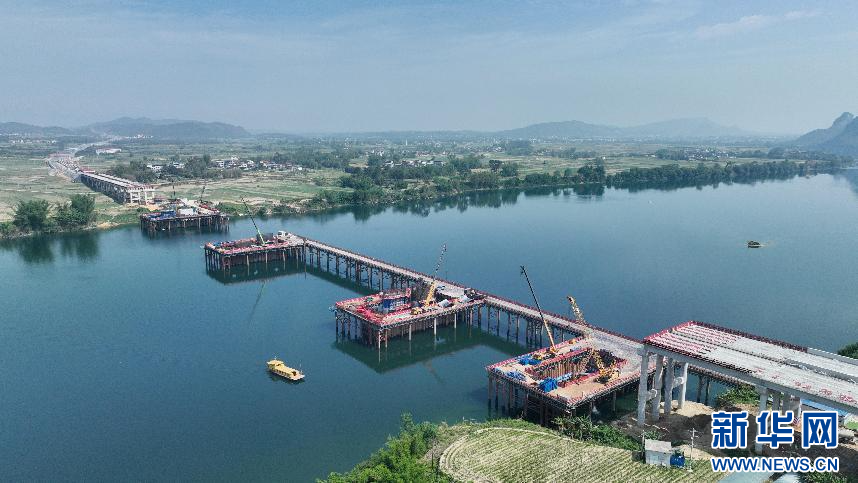 5月2日,柳州高速过境线公路(罗城经柳城至鹿寨段)项目的融江特大桥施工现场。黄云 摄