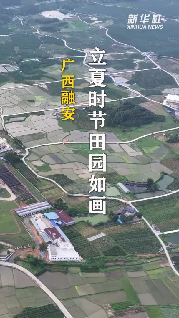 立夏时节,一场降雨过后,地处桂北的广西融安县田野里雨水丰盈,初夏的禾苗散发着嫩嫩的青绿,壮族村寨与阡陌纵横的田园相互映衬,构成一幅初夏天然画卷。