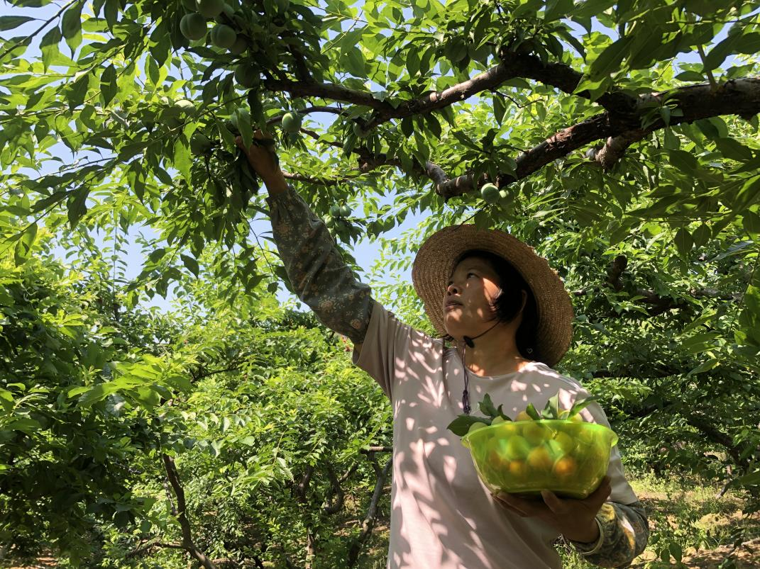 在种植园里,漫山遍野的李子树郁郁葱葱,一个个圆润饱满、红绿相间的珍珠李缀满枝头,弥漫着诱人的果香。果农穿梭其间,忙着采摘成熟的李子,脸上洋溢着丰收的喜悦。