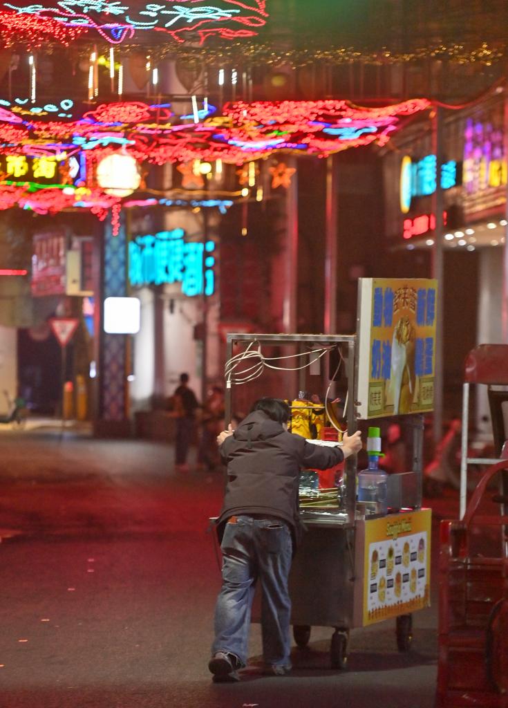 4月7日凌晨,陆一鼎在南宁市西关夜市收摊,准备回家休息。