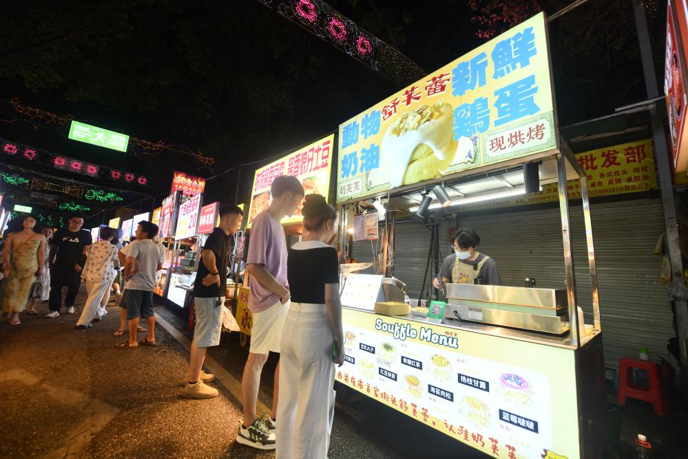 2023年10月,他和女朋友在西关夜市开始经营蛋糕摊位。陆一鼎说,在夜市摆摊,投资成本低,人流量有保证,回报率高,经营夜市也是自己喜欢的生活方式,希望能以夜市作为起点,闯出一条路。