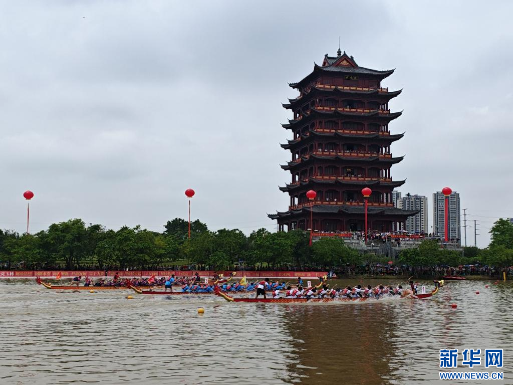 新华网南宁5月31日电(华峻卿)30日,广西玉林园博园内人潮涌动,“龙腾端午·虎竞玉林”2025年玉林市龙舟邀请赛在这里举行。来自玉林各地的16支龙舟队鼓声震天、奋勇争先,在300米直道竞速赛中展开激烈角逐。