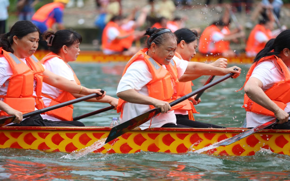 “今年,我们首次组织了两支女子龙舟队,希望女子队伍能为传统龙舟赛事带来新的活力。”合浦街龙舟筹备会会长张长明说。女子龙舟队的出现,为这项赛事增添了别样的风采与活力。女队员们英姿飒爽,奋力挥桨,动作整齐划一,丝毫不让须眉。她们在江面上划出的优美航迹和展现出的拼搏精神,赢得了岸边观众此起彼伏的热烈掌声与喝彩,成为本届龙舟赛一道靓丽而充满力量的风景线,生动诠释了新时代乡村女性的精神风貌。(莫京霖 潘孟阳)