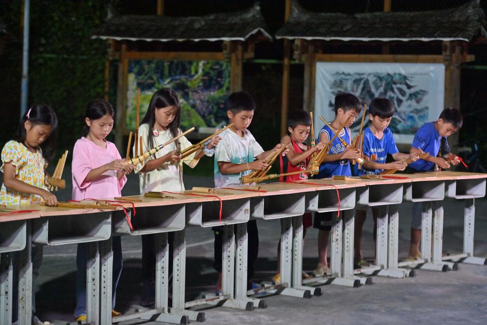 乌英苗寨的孩子们在吹芦笙(2024年10月5日摄)。