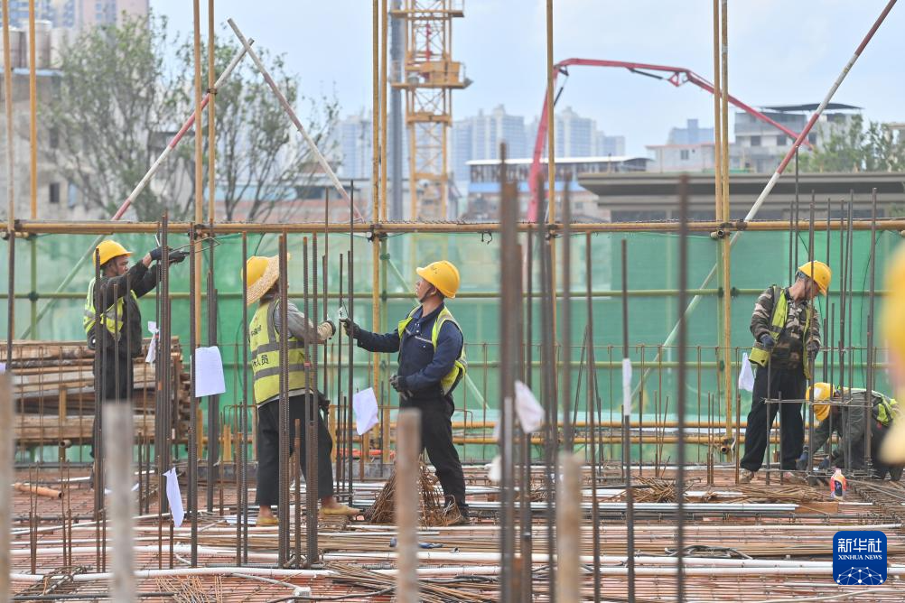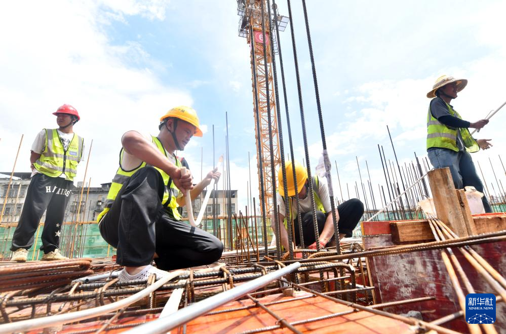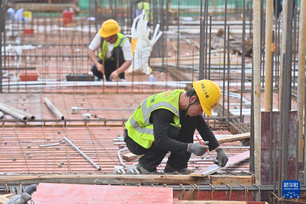6月16日,中铁二十局工人在南宁市鸡村城中村改造项目建设现场施工作业。