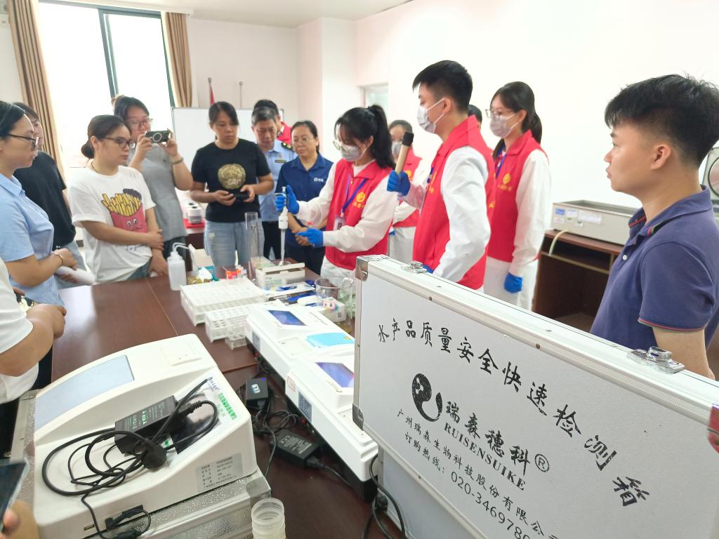 6月18日,在防城港市检验检测中心,志愿者们为农贸市场、配送公司、商超的食品快检人员提供专业培训和上岗考核服务,帮助提升其快检技术水平,为食品安全风险预防提供技术支撑。(完)
