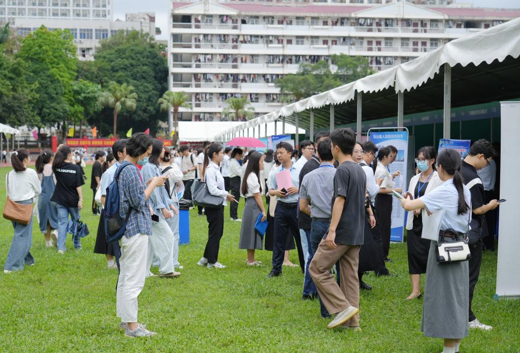 时值毕业季,广西医科大学的操场上,一场“敞开大门”的就业双选会引人注目:校内外学生均能扫码入场应聘;前来招聘的既有广西本地企业,也有区外龙头企业;除医药类岗位,双选会还设置人工智能类专区、教育类专区等满足学生多样化就业需求。