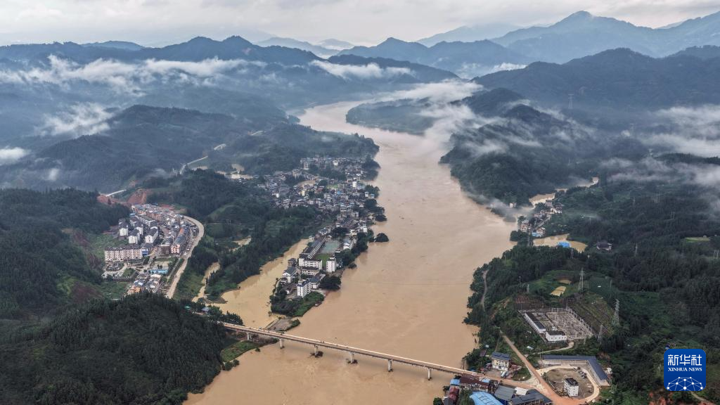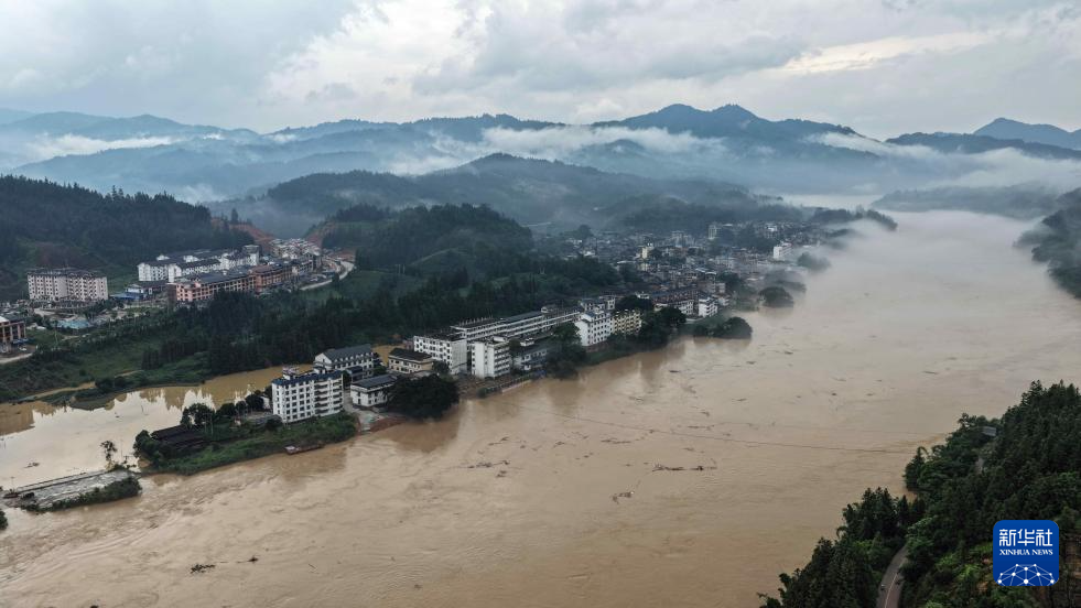 这是被淹的三江侗族自治县良口乡良口村(无人机照片,6月25日摄)。