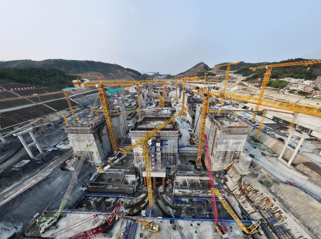 广西平陆运河马道枢纽施工现场。新华社记者 周华 摄