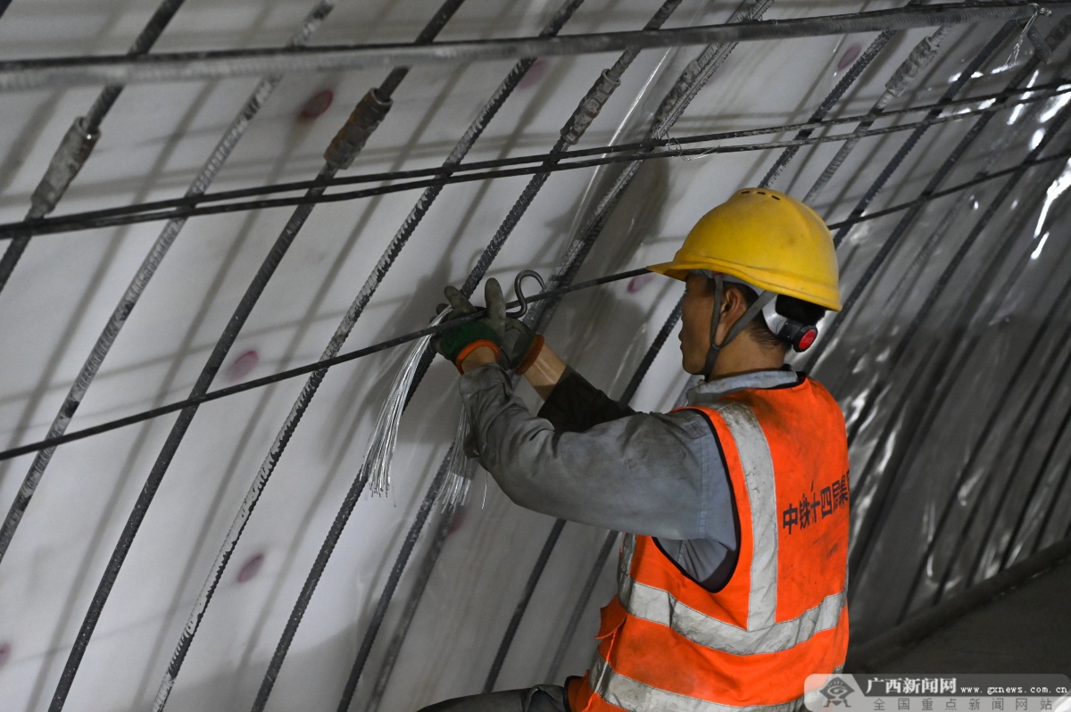 施工人员在凌云隧道进行钢筋绑扎作业。秦志龙 摄