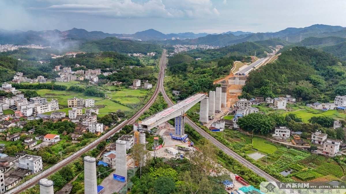 作为连接北部湾经济区和粤港澳大湾区快速客运通道——南珠高铁玉岑段建设进度条不断刷新。7月2日,义垌村跨益湛铁路特大桥连续T构成功转体打通架梁通道关键节点,为后续架梁和全线铺轨施工奠定基础。