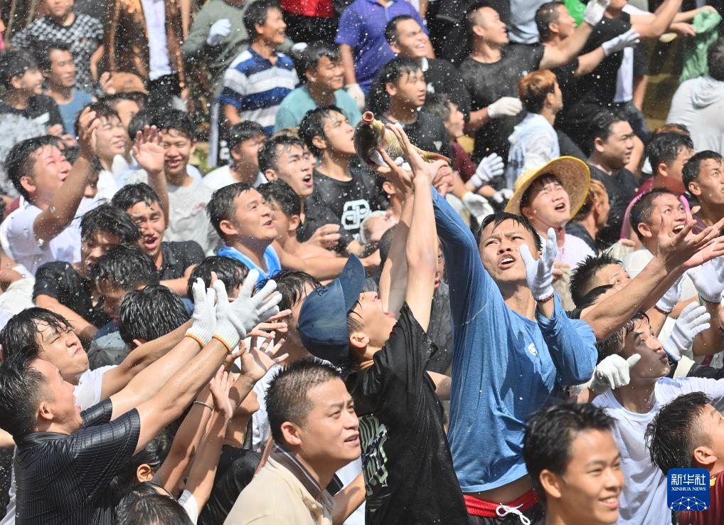 7月10日,在融水苗族自治县红水乡良双村,村民和游客在观看闹鱼节活动。当地利用粤桂协作资金,不断提升闹鱼节活动基础设施条件,增强游客和村民的体验感。