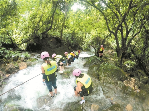 “溪降比游泳、溯溪等传统亲水项目更为刺激好玩,对年轻人有较强吸引力。基于市场前景,我们依托景区原始峡谷溪流资源,开发了溪降项目。”丹炉山景区有关负责人介绍,项目一定程度上填补了广西峡谷水上运动的空白。