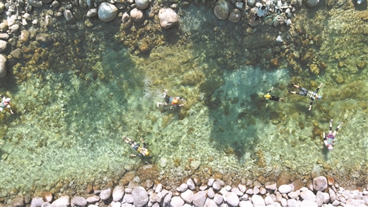 除了冒险刺激的新玩法,当地也有温和的避暑新体验。游客步入神秘奇幻的地下溶洞,沿着纵横交错的地下河流前行,在领略大自然鬼斧神工的同时,还能感受到来自远古的凉风。“来到这里就像进入了一个奇幻世界,里面特别凉爽,处处充满惊喜。”重庆游客王女士说。