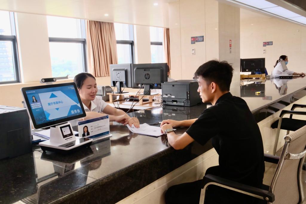黄鸿瑜在南宁市民中心综合项目科办事窗口办理车辆运输证业务。新华社记者邹雨沁 摄