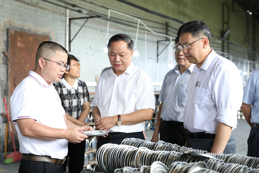 7月8日,驻博白县的自治区人大代表到龙潭产业园走访玉商玉工,听取意见建议。