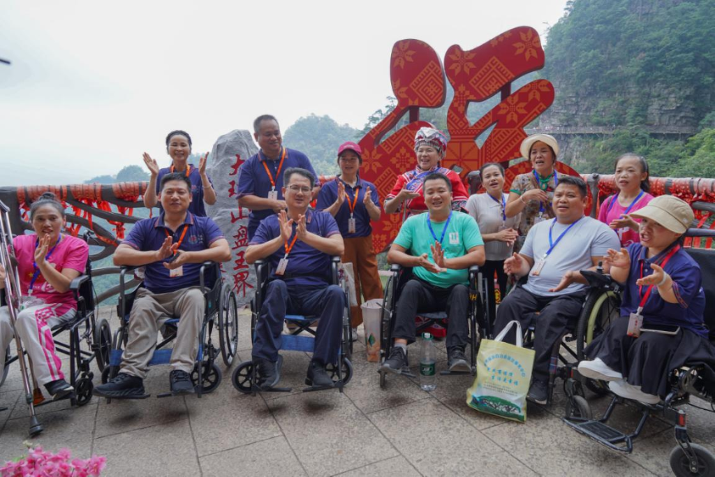 仪式结束后,由各类别残疾人代表及志愿者共68人组成的体验团,实地体验景区的无障碍设施与服务。体验团乘坐1650米的高空索道,7分钟可成功登顶;两部百米悬崖观光电梯让体验者直达观景核心区;8.5公里无台阶悬崖挂壁游步道,让游客全程游览畅通无阻。此外,体验团还沉浸式参与瑶医问诊、瑶绣制作等瑶族文化互动项目,感受民族文化魅力。大瑶山盘王界无障碍游体验官钟碧娟说道:“全程‘无障碍游’体验很好,让我看到了曾经没能看到的风景,圆了我的登山梦。”