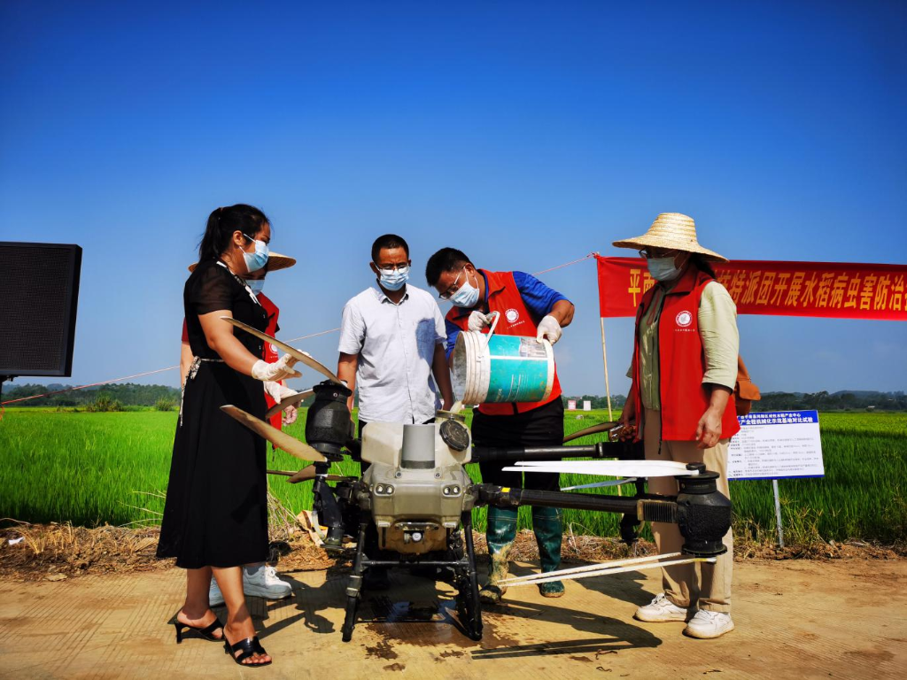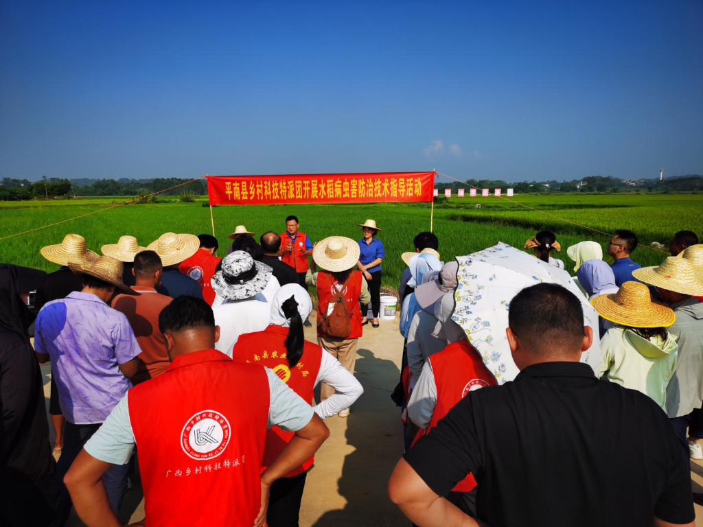 此前“桦加沙”“博罗依”“麦德姆”台风过境,平南县水稻细菌性条斑病、白叶枯病等病虫害呈加重态势。10月4日,平南县“一县一团”的乡村科技特派员深入东华镇、安怀镇、平南街道等地村屯进行踏田调查,摸清病虫害底数。此次集中培训,特派员们同步启动水稻病虫害联防联控,专家们既讲“大战略”,也教“土办法”——从药剂配比到喷雾时机,从田间排水到天敌保护,手把手破解农户防治难题。“往年台风后病虫害总让我发愁,今年有特派员专家上门指导,我们的稻子有救了。”种粮大户廖柏奇说。