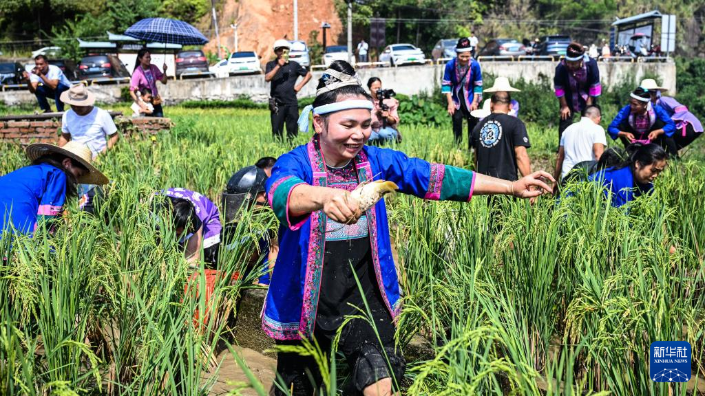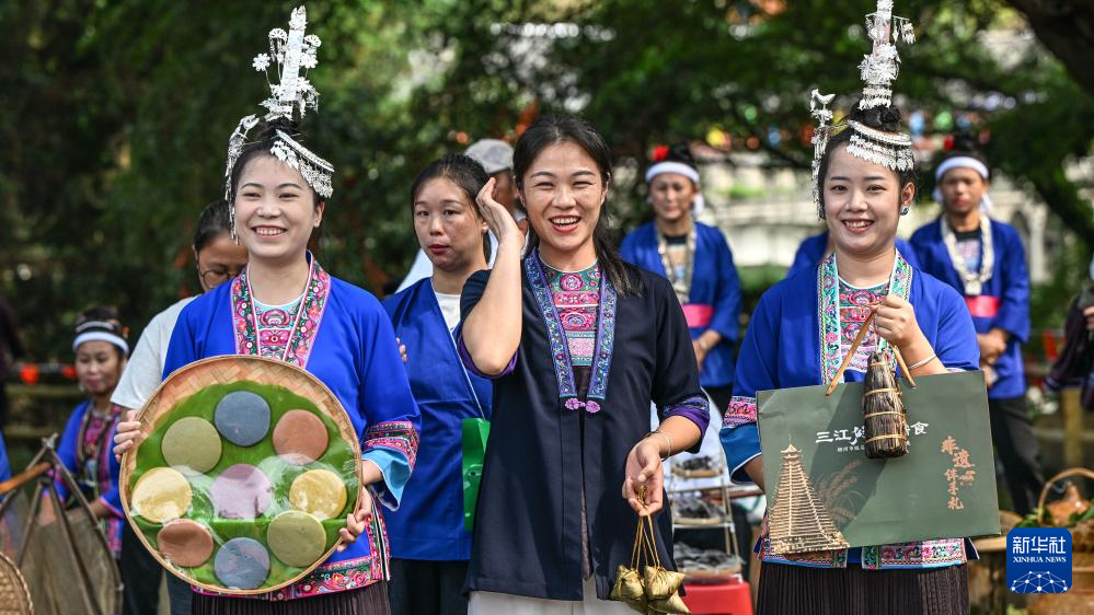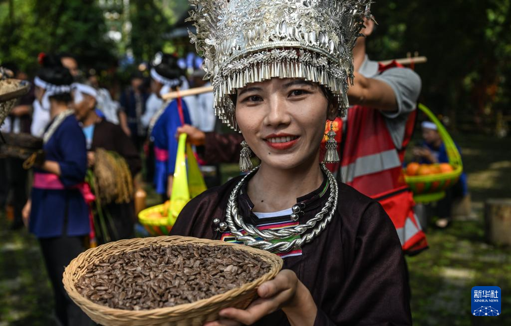 10月17日,广西三江侗族自治县5个乡镇的群众聚集在良口乡产口村,开展形式多样的庆丰收活动。