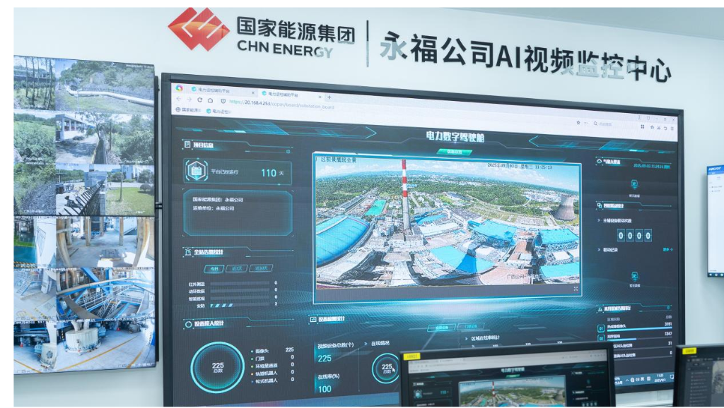 数字赋能安全生产。国能永福公司引入AI深度学习智能安全管控系统,通过225个高清摄像头和安装在高约210米烟囱上的“鹰眼”系统,自动识别未佩戴安全帽、未系安全带、人员闯入危险区域等十余种违章行为,构筑“人防”到“技防”相结合的安全生产坚固防线。