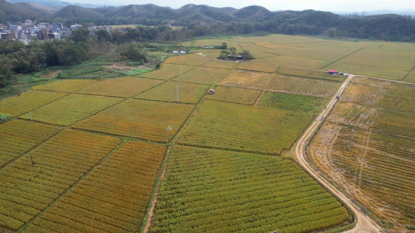 走进博白县东平镇合江村的百亩水稻制种基地,金黄的稻田里沉甸甸的稻穗随风起伏,涌起层层稻浪。农机手驾驶收割机开足马力,收割、脱粒等工序一气呵成,往返穿梭间,一片片稻田快速完成收获。“机械插秧,比手工抛秧抗倒性更强,病虫方面也更容易管理。里面的通风、采光,相比原来手工抛秧更上一个层次。”制种大户刘志说。