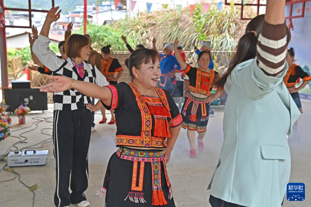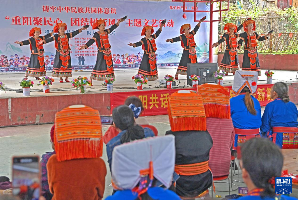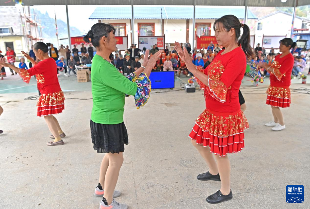 10月29日,两地群众在广西金秀瑶族自治县三角乡六定村进行重阳节文艺活动。新华社记者 周华 摄