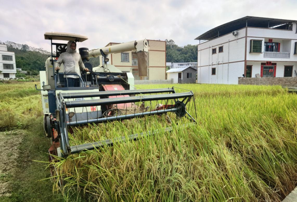 石窝镇是北流市开机收割晚稻最早的镇之一。截至11月4日,全镇约20000亩晚稻已完成收割过半,机收率超90%。