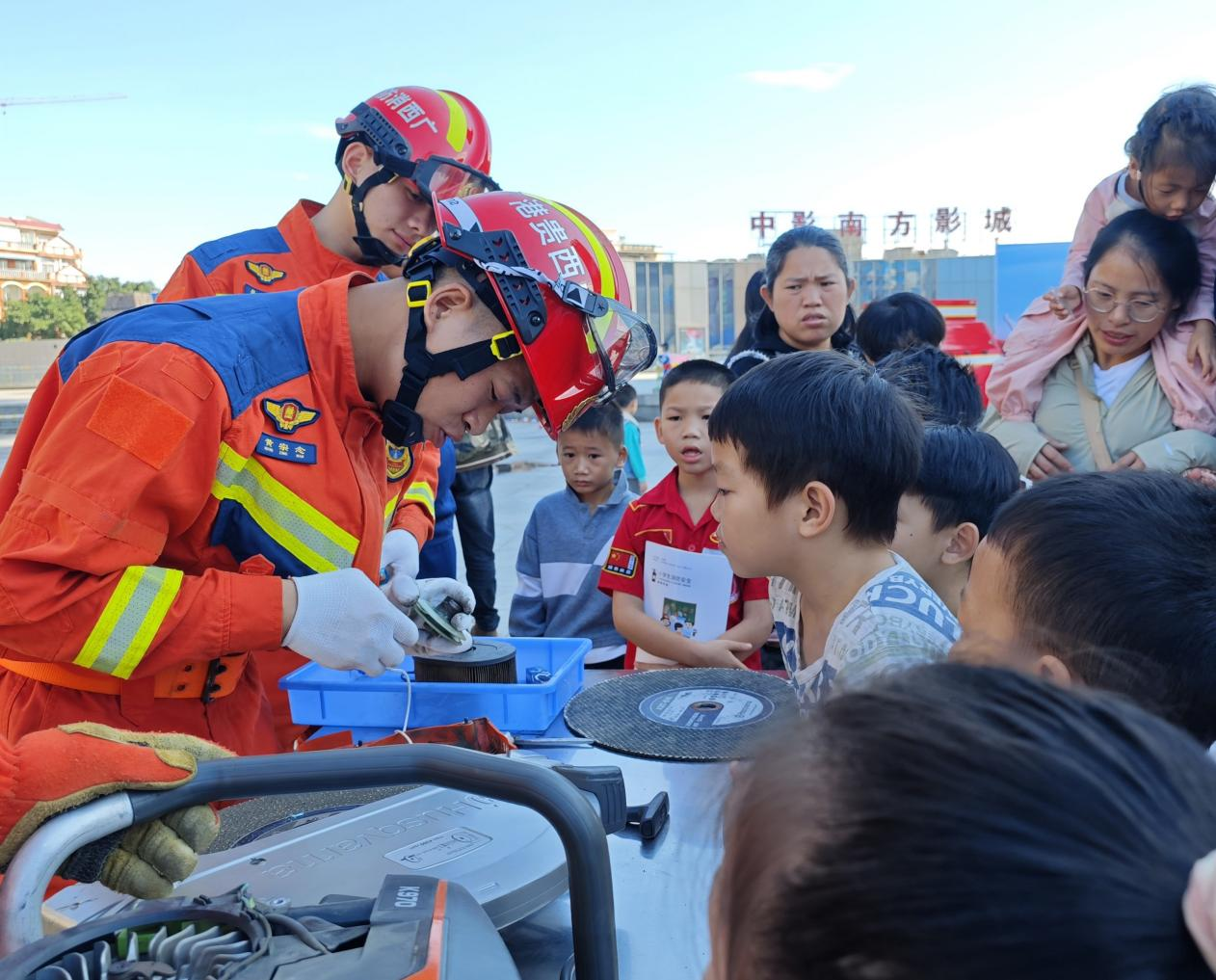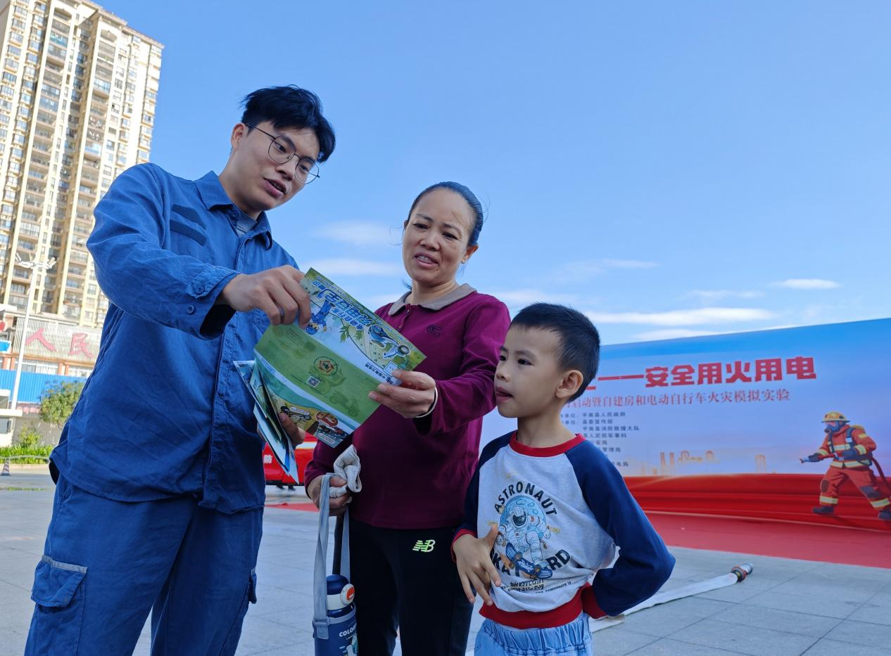 南方电网广西贵港平南供电局联合平南县委宣传部、平南县消防救援大队等单位在现场开展了形式多样的消防、安全用电、交通安全等宣传教育和实操灭火演练及体验活动。(方天学)